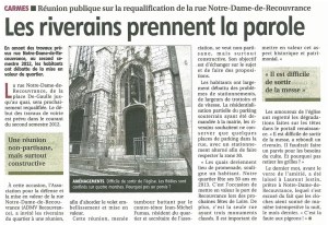 Compte-rendu dans la République du Centre de ce mardi 10 juillet de l’assemblée générale de l’Association de défense et de mise en valeur de la rue Notre-Dame de Recouvrance (25 juin 2012)
