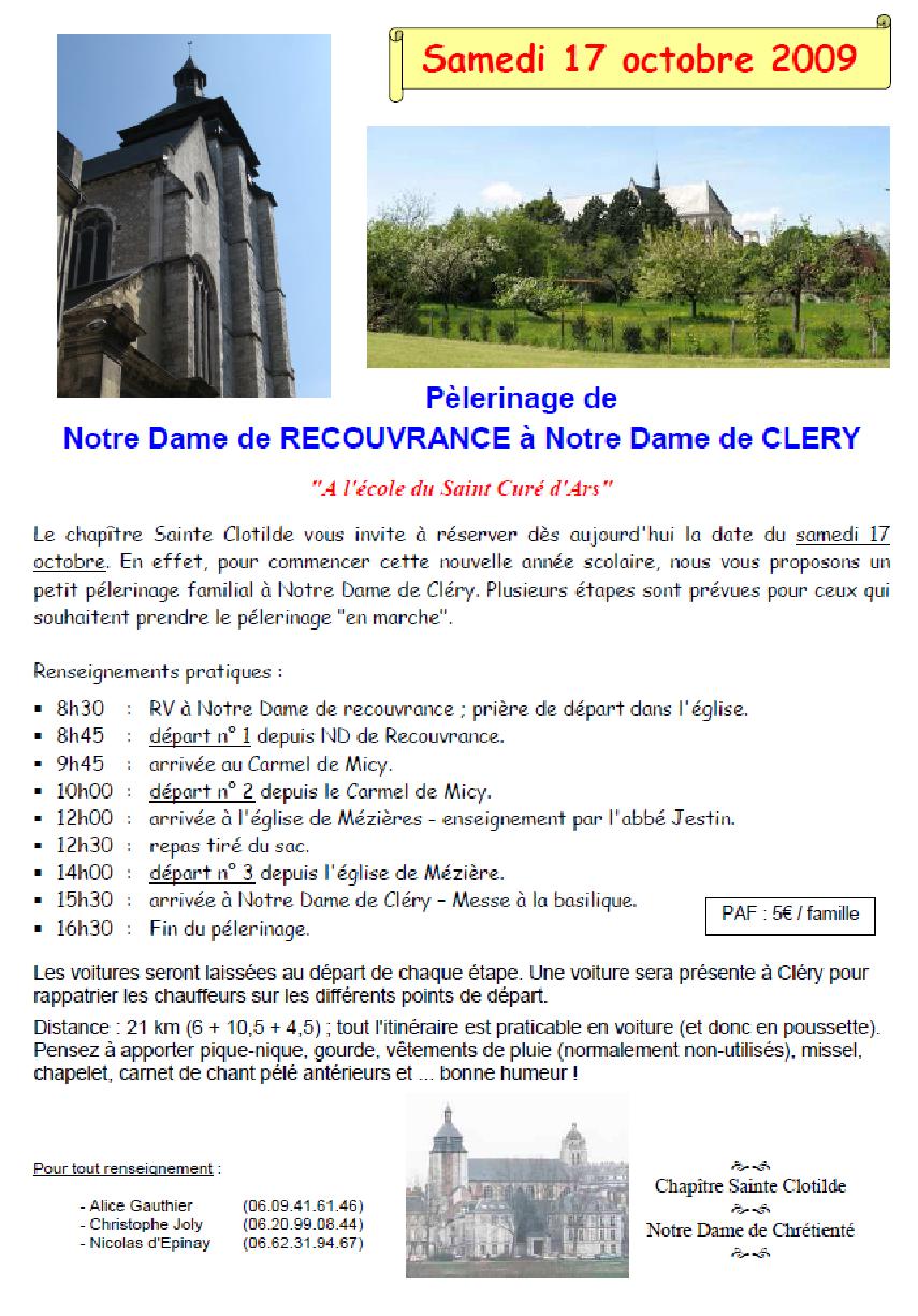 En cette année sacerdotale, le chapitre organise son pèlerinage de rentrée le samedi 17 octobreentre Notre Dame de Recouvrance et Notre Dame de Cléry sous l’égide du Saint Curé d’Ars.
