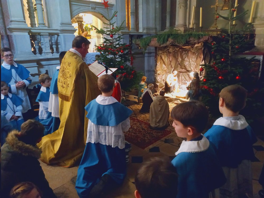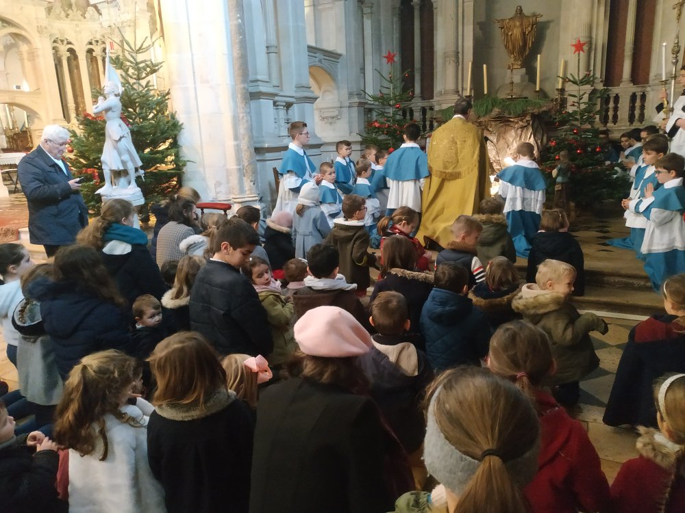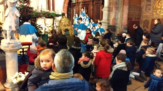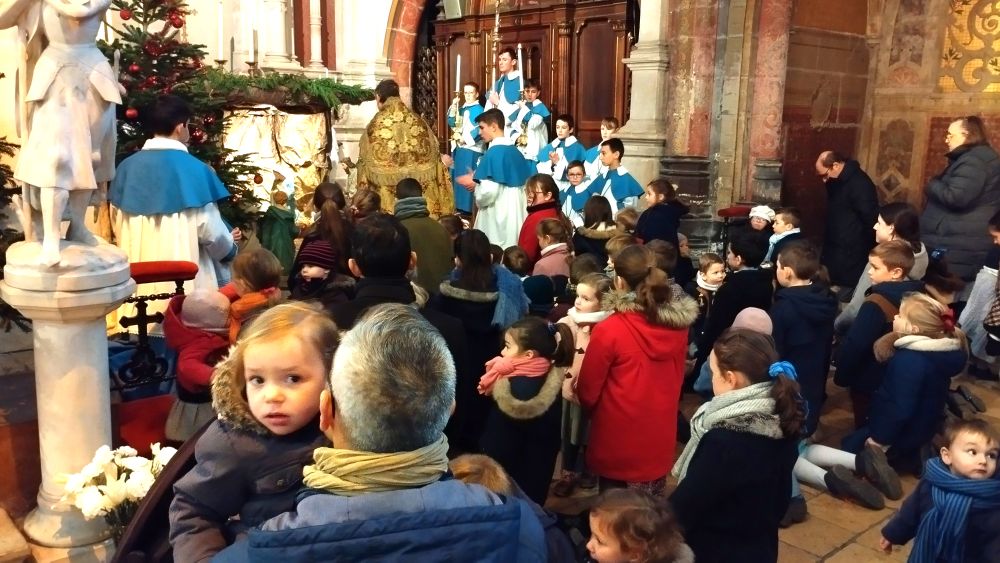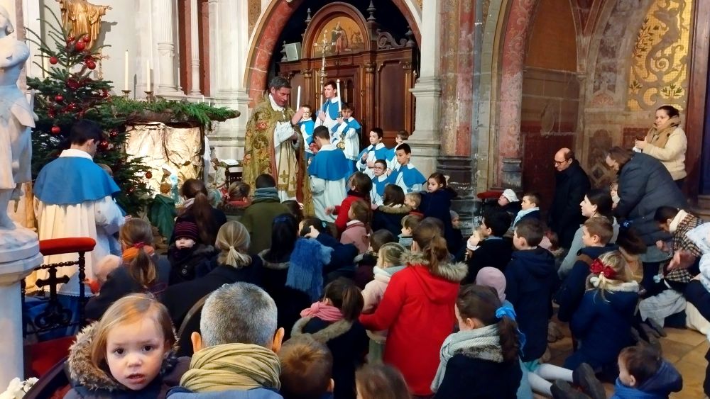 A la fin de la messe, se déroulera la bénédiction des enfants devant l’Enfant Jésus de la crèche, que les enfants viendront ensuite vénérer.