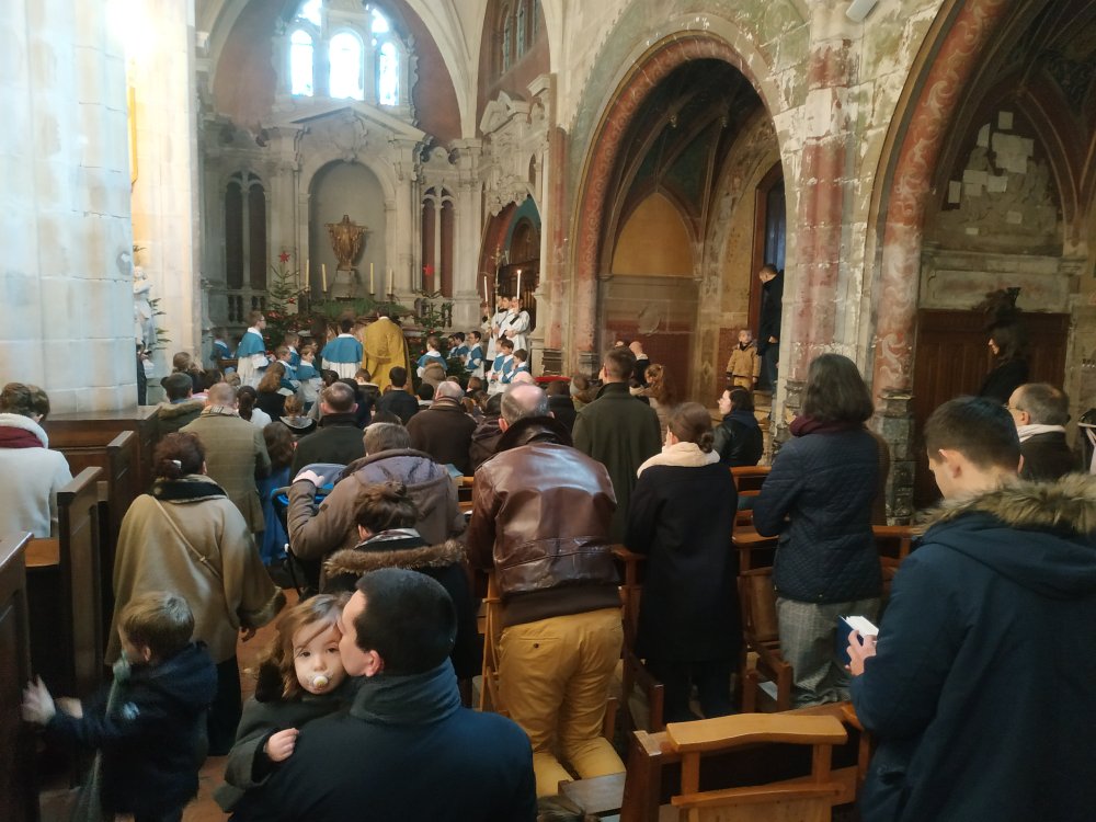 En ce dimanche de la sainte Famille que nous solennisons après le dimanche de l’Épiphanie, car c’est la fête patronale de notre église (avec l’évangile du recouvrement de Jésus au Temple), il y a eu la bénédiction des enfants.